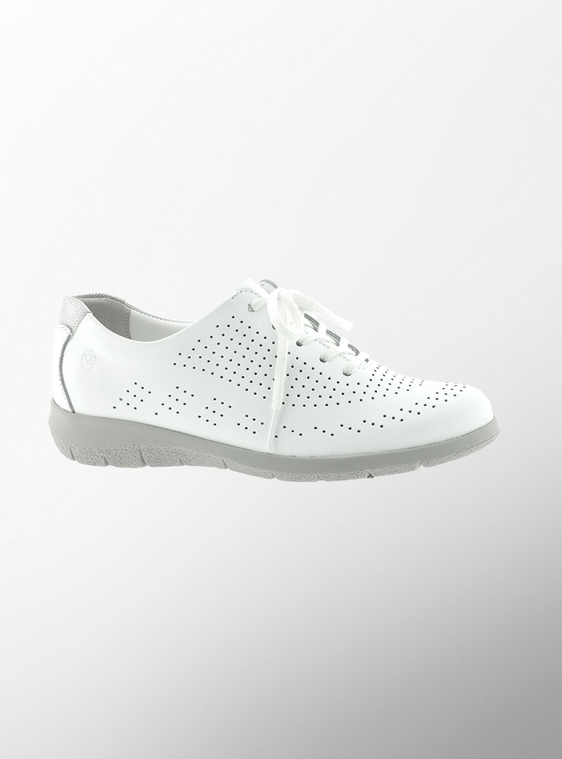 • Women’s orthopedic shoes in a clean design, classic white color, with perforated genuine leather and laces